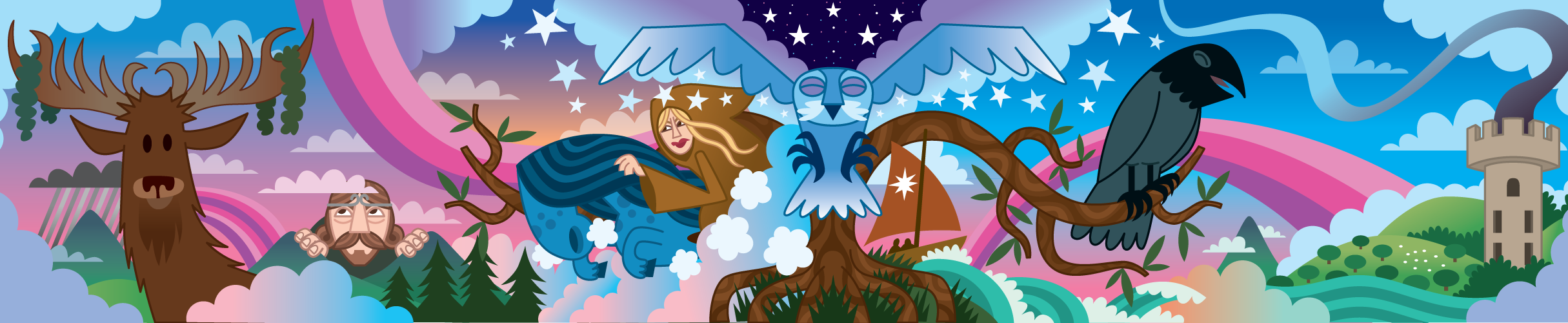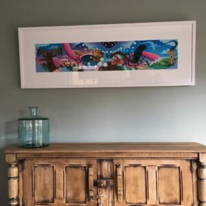 Print giclée o safon uchel yn dangos Murlun y Tŵr Dŵr gan yr arlunydd byd-enwog Pete Fowler (sydd fwyaf adnabyddus am ei waith gyda’r Super Furry Animals).