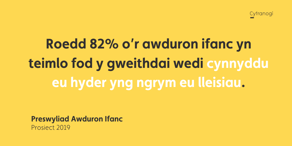 Gyda nifer cynyddol o bobl ifanc Cymru yn byw mewn tlodi, ac ystadegau iechyd meddwl yn peri gofid, mae’n braf gweld gweithgareddau llenyddol yn cael effaith bositif ar y cyfranogwyr, gan gynnwys: cynnydd yn ymddygiad cyfranogwyr ym myd addysg, a 82% o’r awduron ifanc yn teimlo cynnydd yn yr hyder y maent yn ei deimlo yng ngrym eu lleisiau.