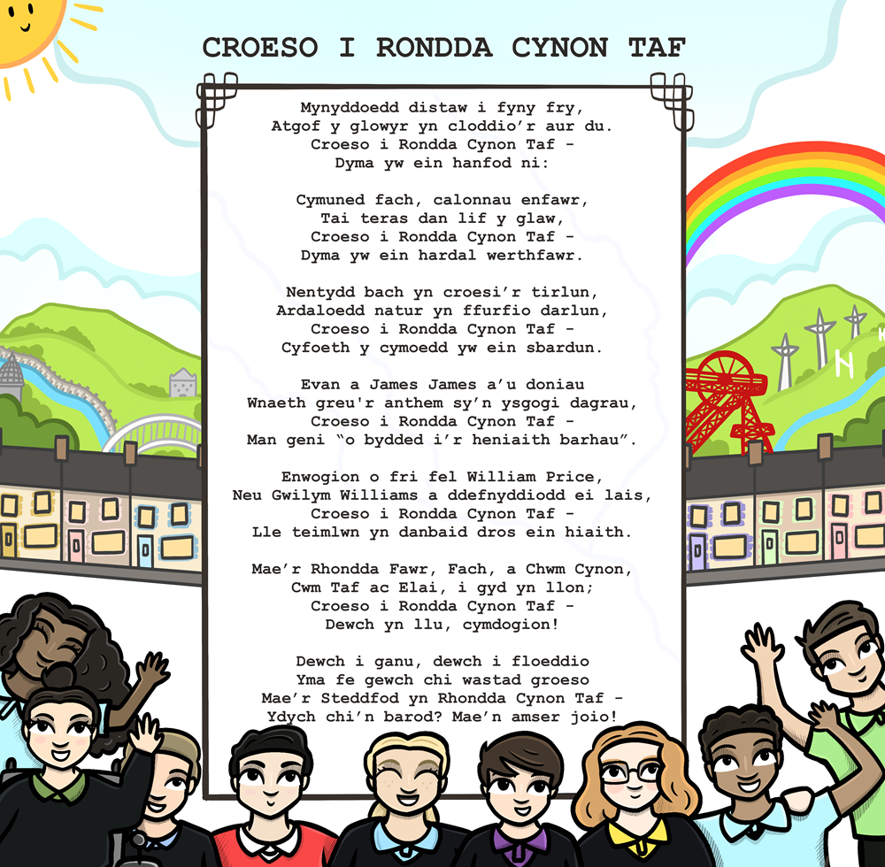 Ysgrifenwyd y gerdd hon yn dilyn gweithdai yng Nghanolfan Gartholwg gyda cynrychiolwyr o blant y fro, i groesawu ymwelwyr Eisteddfod Rhondda Cynon Taf i’r ardal yn 2024.