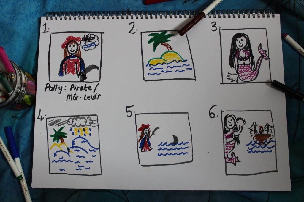 Mae yna un stori arall gennyf fi, a wedyn, mae e lan i chi. Mae gen i weithgaredd i chi i’ch helpu chi i greu stori newydd, un y gallech chi ei hadrodd…